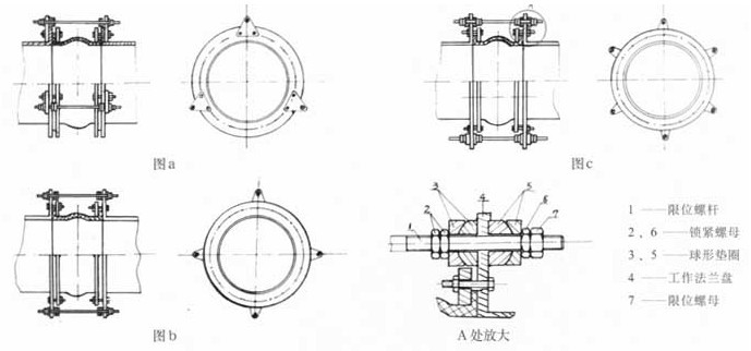 5、 當橡膠接頭在水(油)泵出口近距離或開停頻繁條件下使用時,為減少橡膠接頭長度的拉伸和壓縮過大而給泵和管道帶來的影響,應在法蘭兩端增加限位裝置。